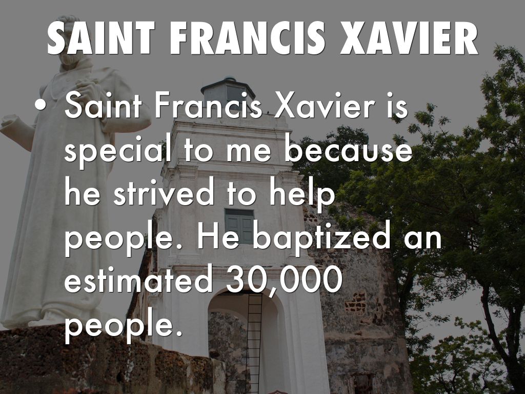 • Saint Francis Xavier is special to me because he strived to help people. He baptized an estimated 30,000 people.