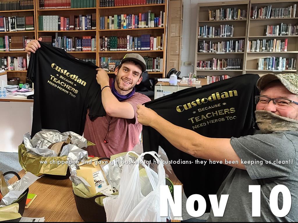 we chipped in and gave gift baskets tot he custodians- they have been keeping us clean!!