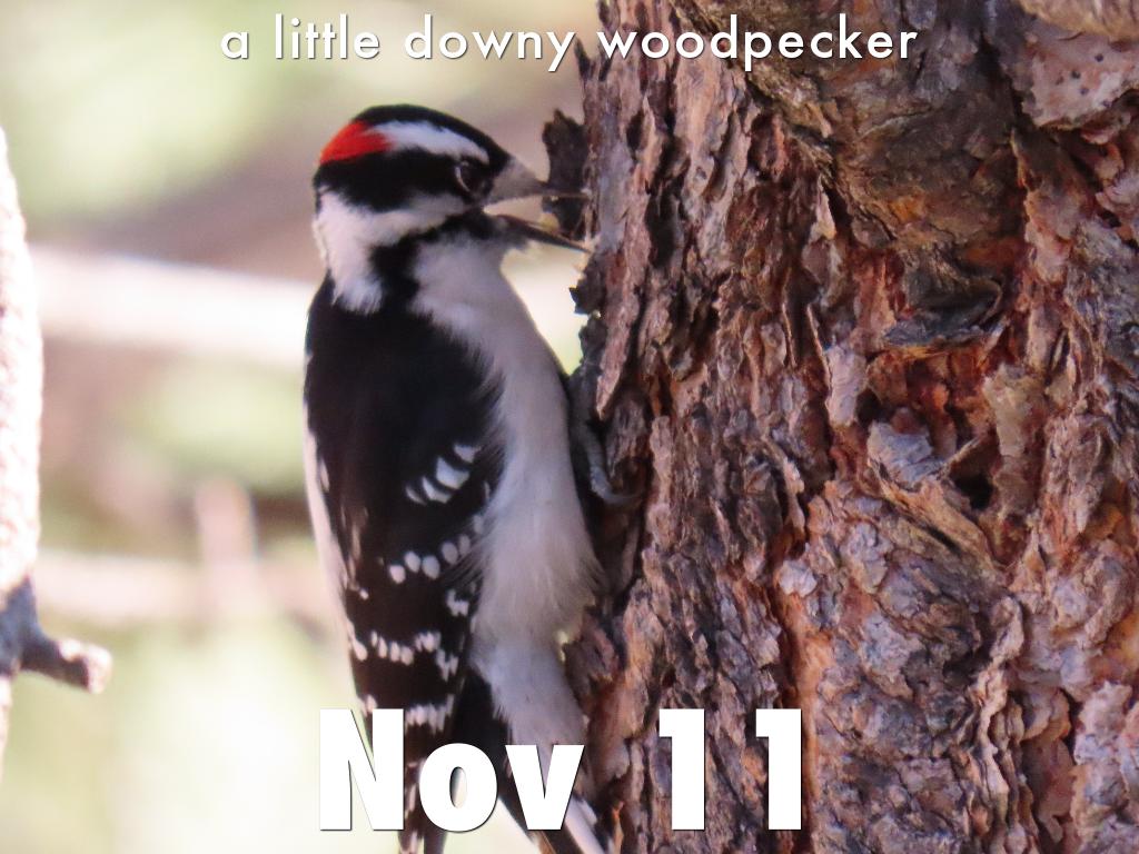 a little downy woodpecker