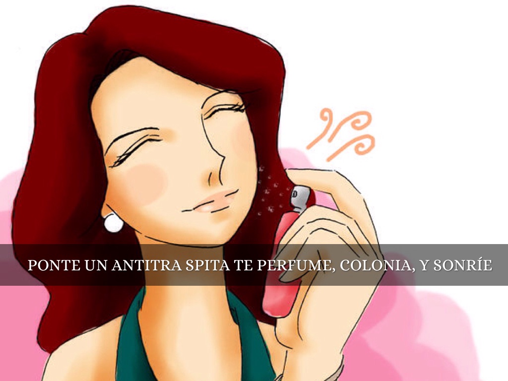 PONTE UN ANTITRA SPITA TE PERFUME, COLONIA, Y SONRÍE