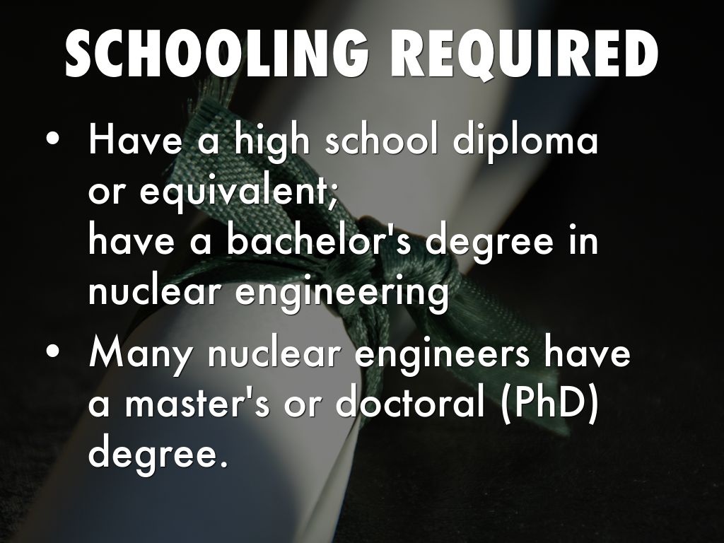 Have a high school diploma or equivalent; have a bachelor's degree in nuclear engineering