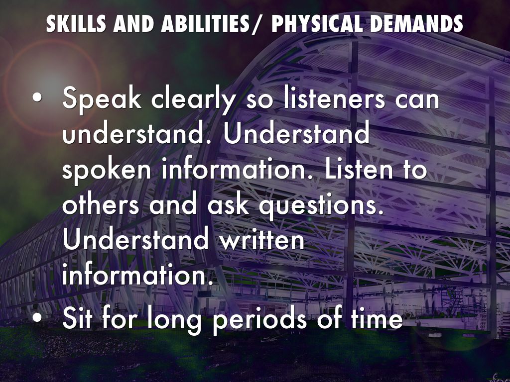 SKILLS AND ABILITIES/ PHYSICAL DEMANDS