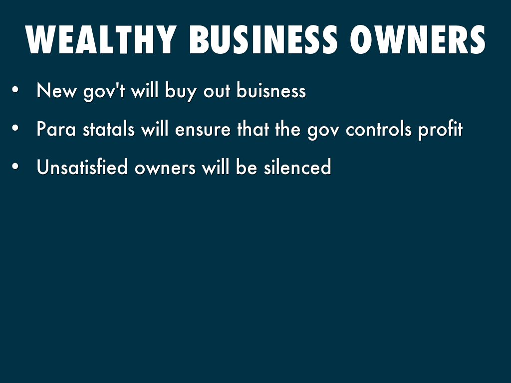 - Will be satisfied with gov't control of economy