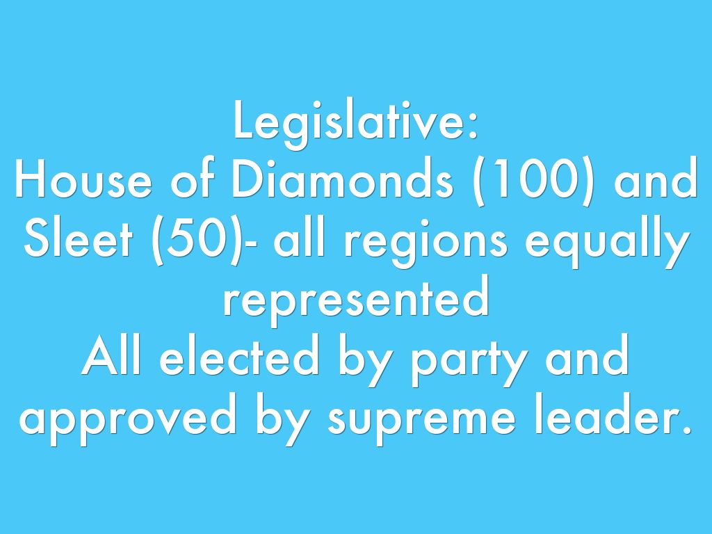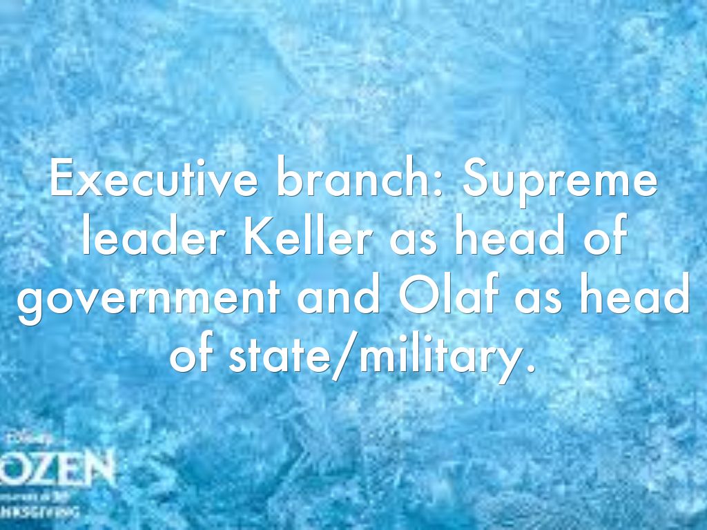 Executive branch: Supreme leader Keller as head of government and Olaf as head of state/military.