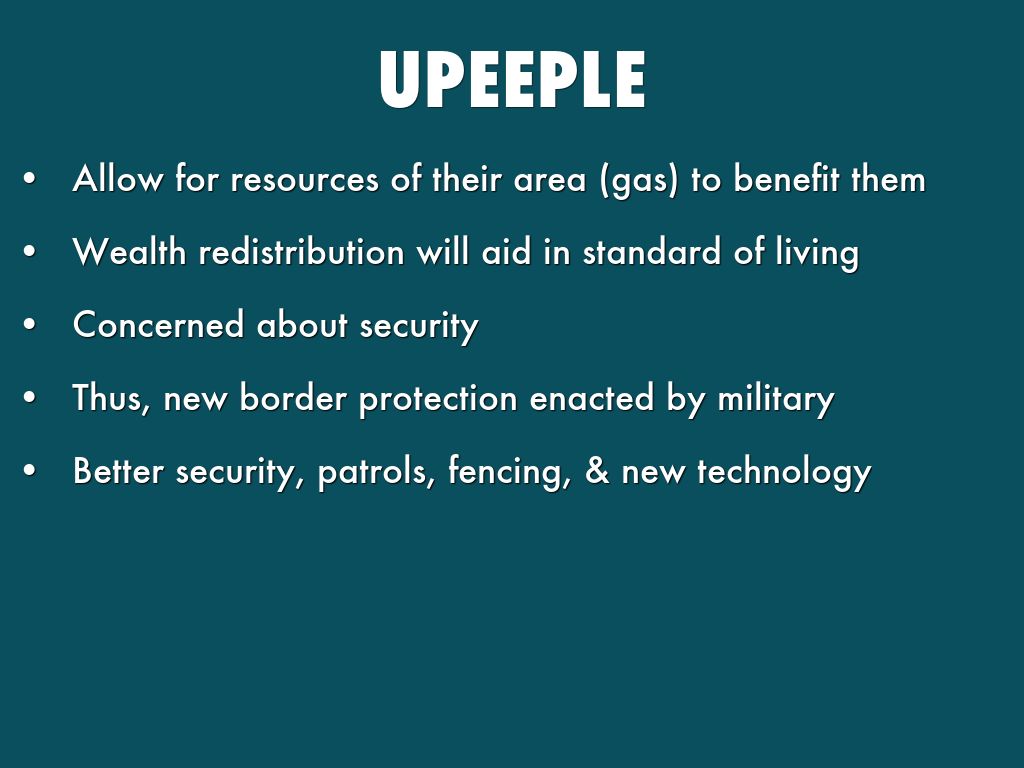 - Allow for resources of their area (gas) to benefit them
