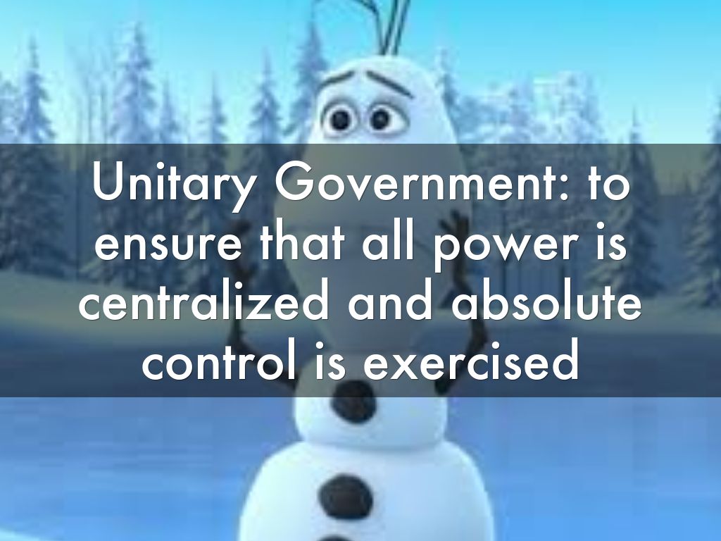 Unitary Government: to ensure that all power is centralized and absolute control is exercised