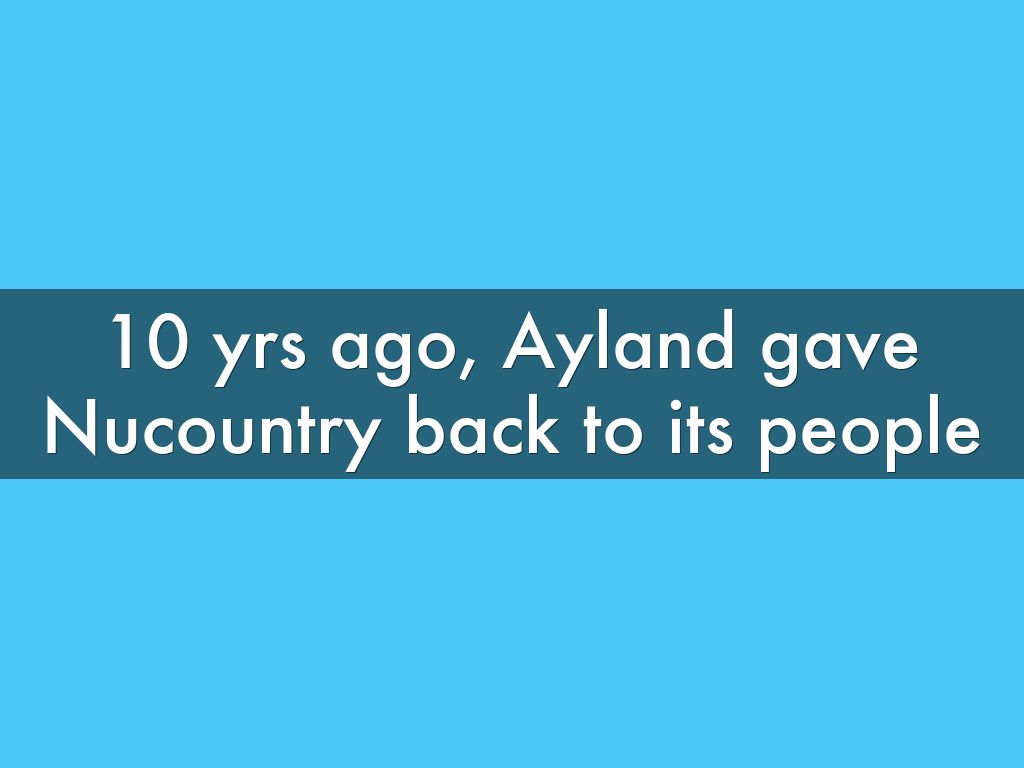 10 yrs ago, Ayland gave Nucountry back to its people