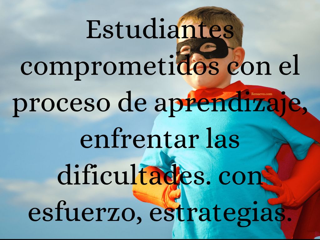 Estudiantes comprometidos con el proceso de aprendizaje, enfrentar las dificultades. con esfuerzo, estrategias.