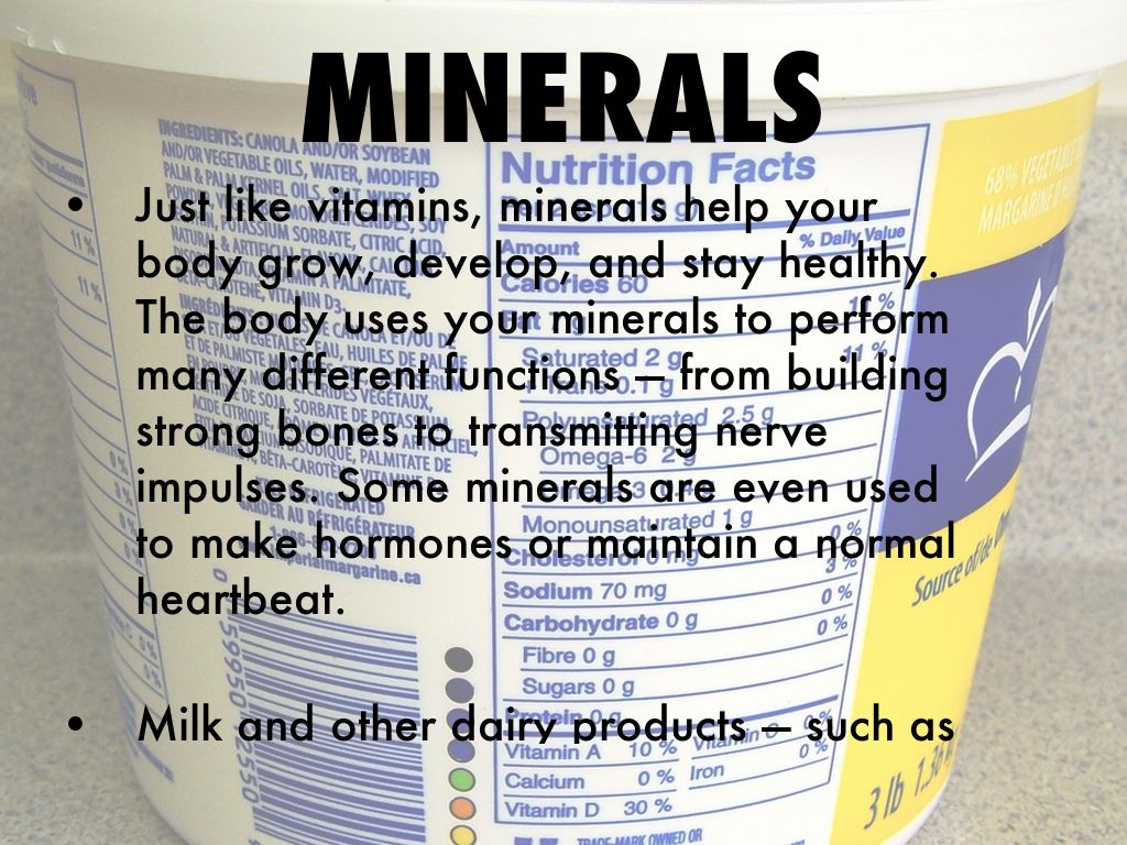 Just like vitamins, minerals help your body grow, develop, and stay healthy. The body uses your minerals to perform many different functions — from building strong bones to transmitting nerve impulses. Some minerals are even used to make hormones or maintain a normal heartbeat.