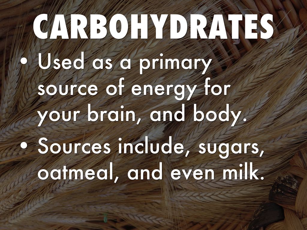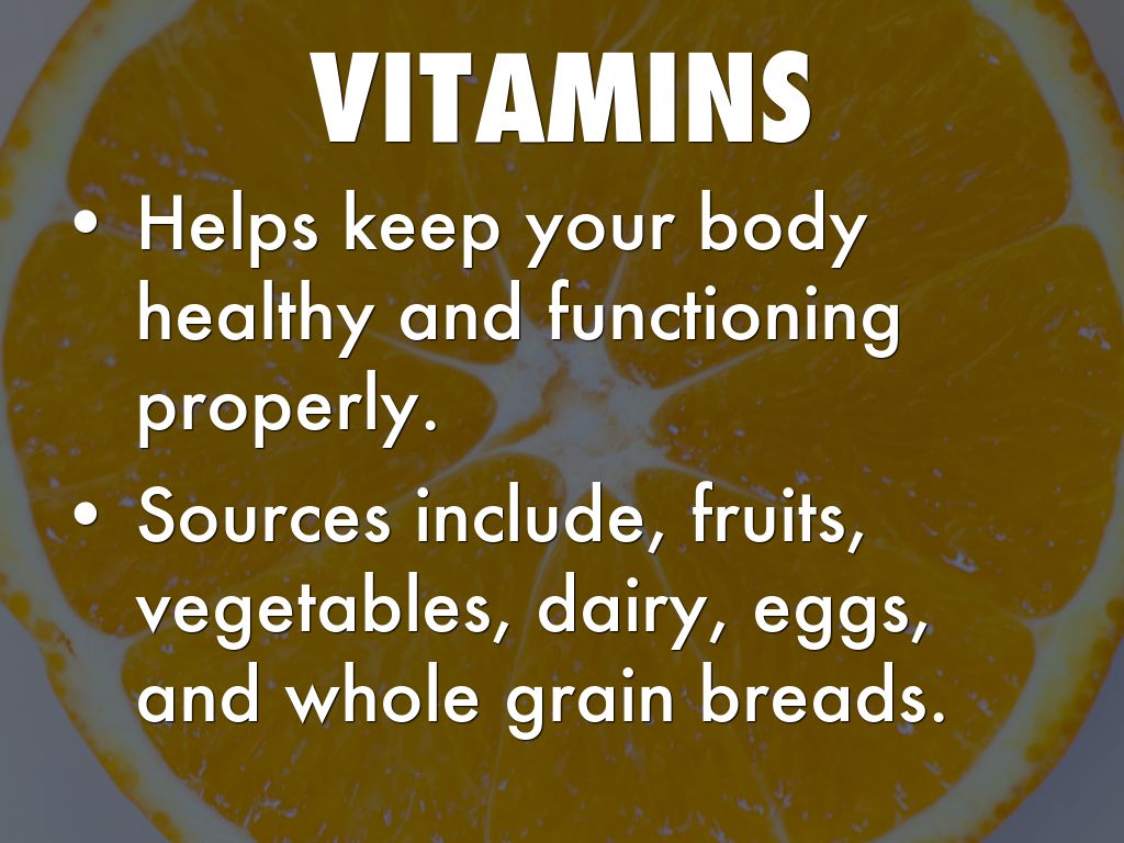 Sources include, fruits, vegetables, dairy, eggs, and whole grain breads.