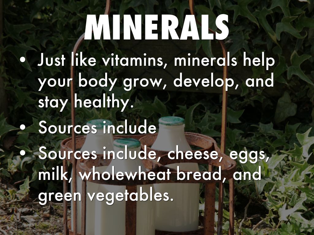 Just like vitamins, minerals help your body grow, develop, and stay healthy.