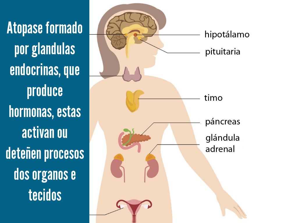 Atopase formado por glandulas endocrinas, que produce hormonas, estas activan ou deteñen procesos dos organos e tecidos