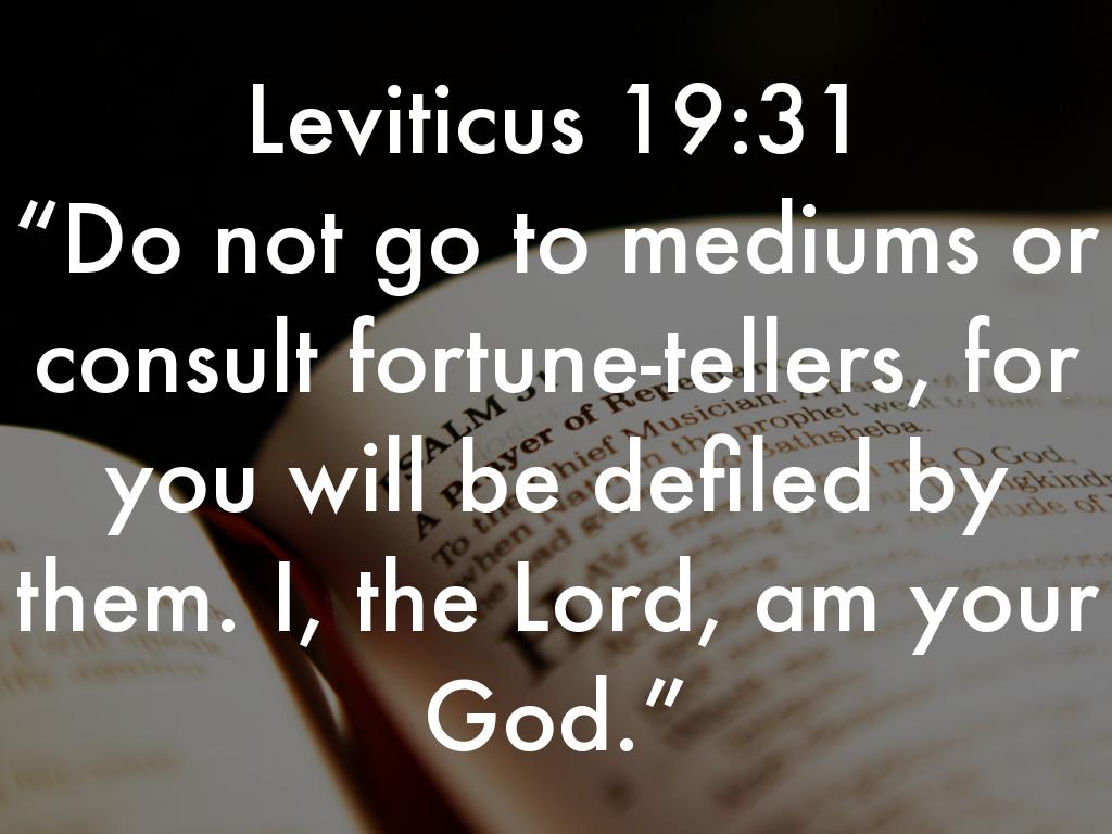 “Do not go to mediums or consult fortune-tellers, for you will be defiled by them. I, the Lord, am your God.”