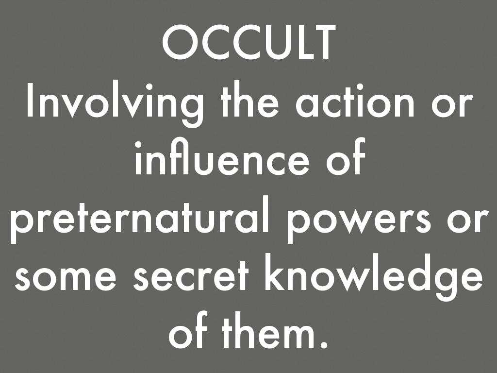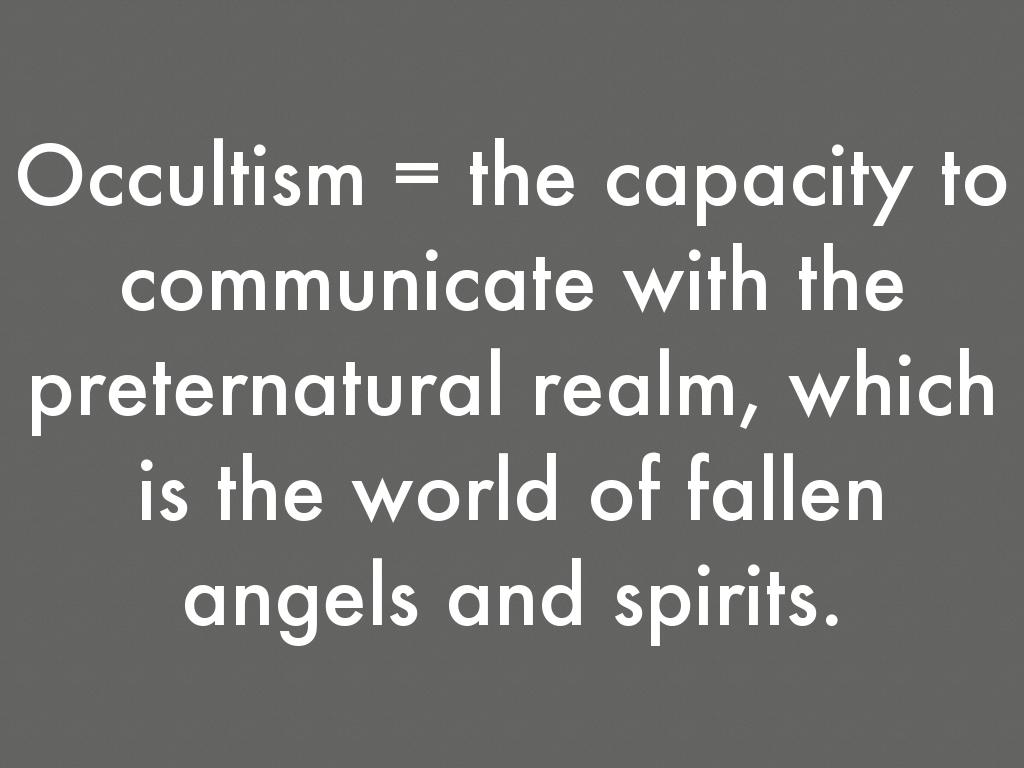 Occultism = the capacity to communicate with the preternatural realm, which is the world of fallen angels and spirits.