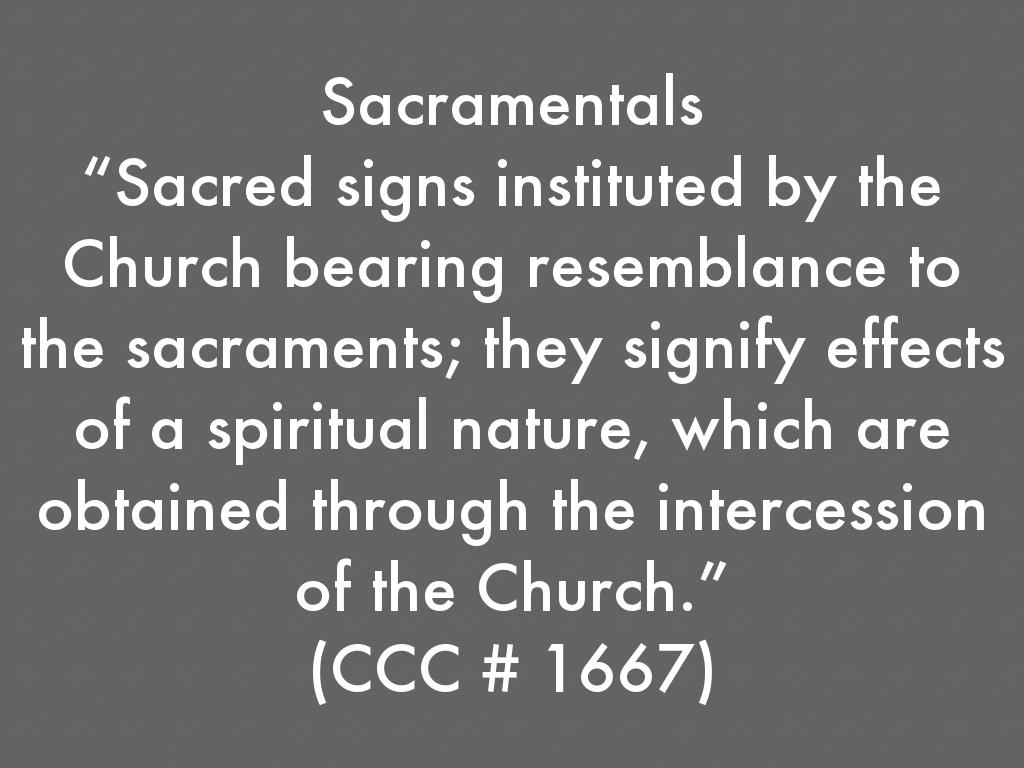 “Sacred signs instituted by the Church bearing resemblance to the sacraments; they signify effects of a spiritual nature, which are obtained through the intercession of the Church.”
