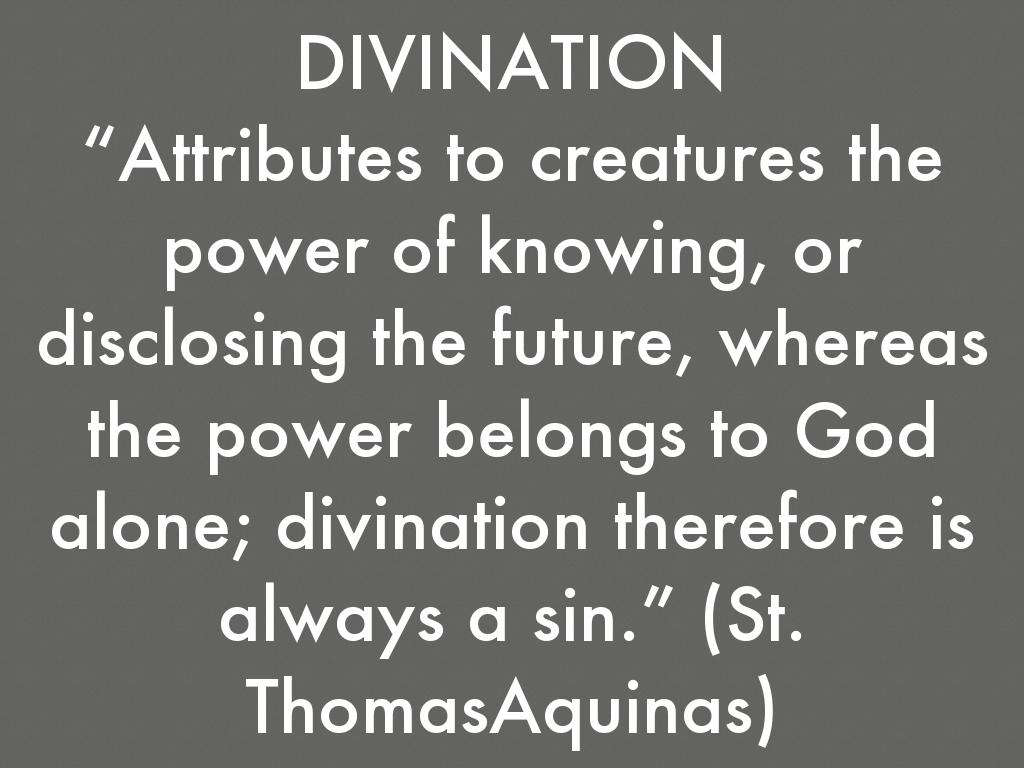 “Attributes to creatures the power of knowing, or disclosing the future, whereas the power belongs to God alone; divination therefore is always a sin.” (St. ThomasAquinas)