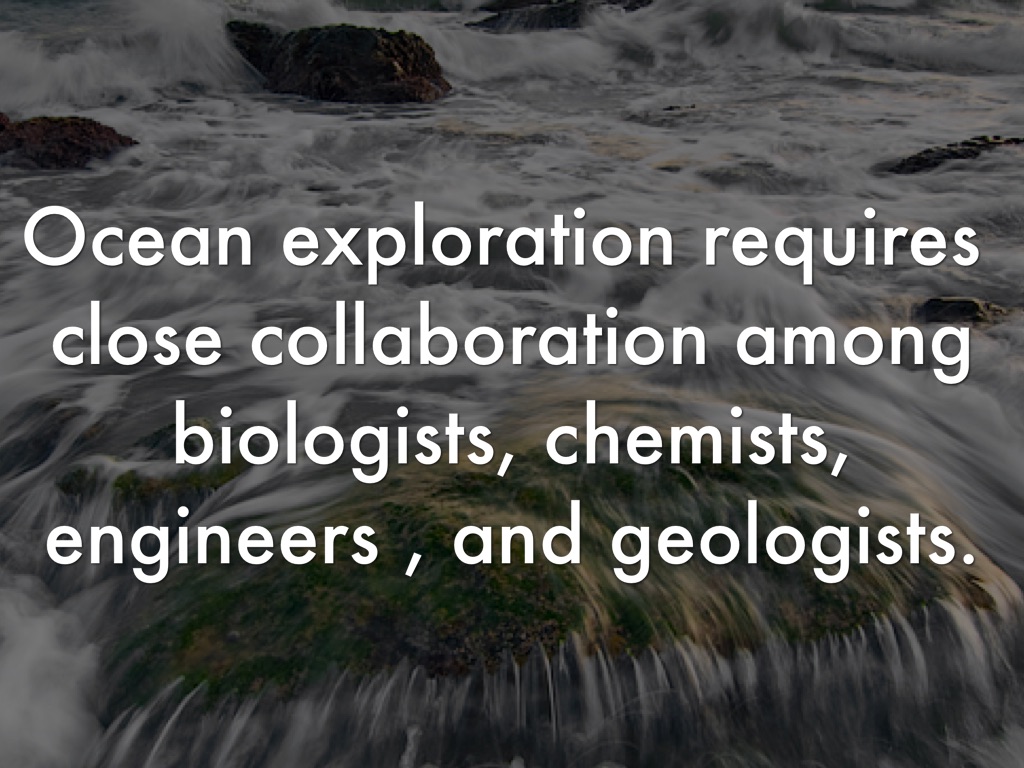 Ocean exploration requires close collaboration among biologists, chemists, engineers , and geologists.