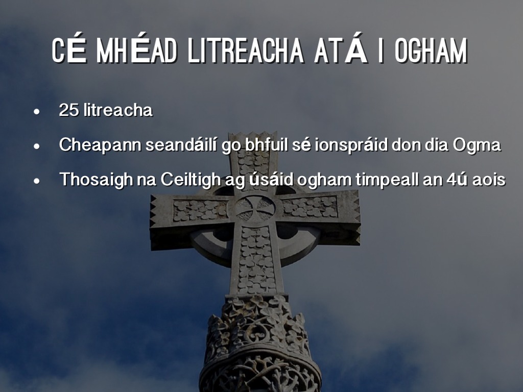 CÉ MHÉAD LITREACHA ATÁ I OGHAM