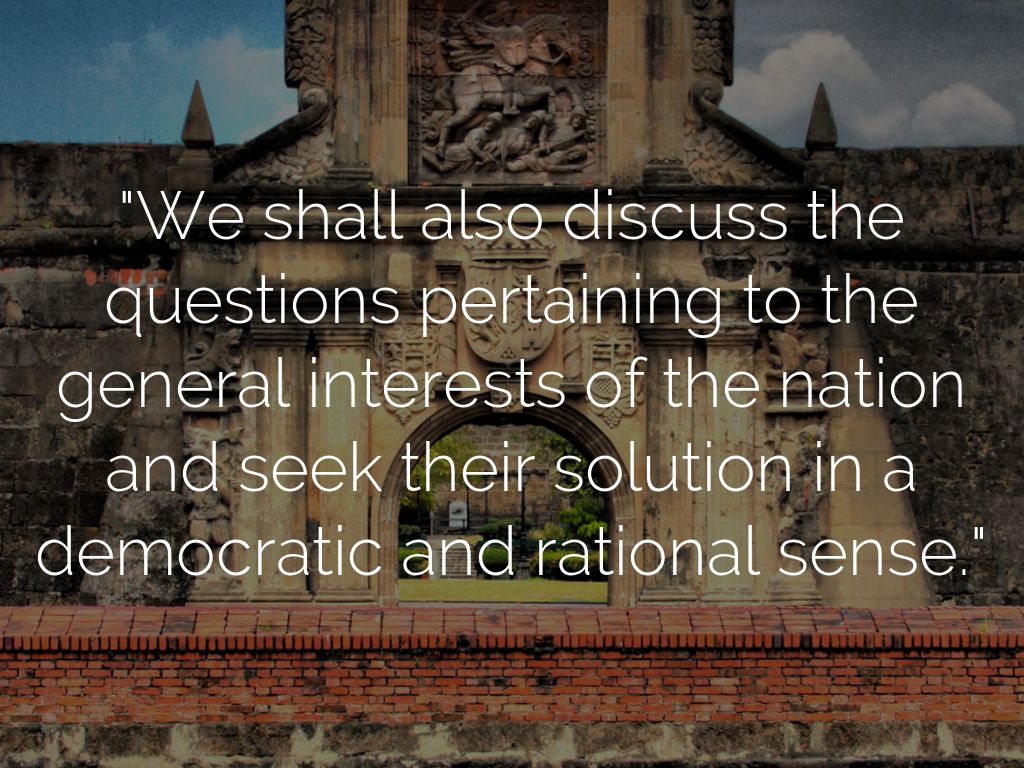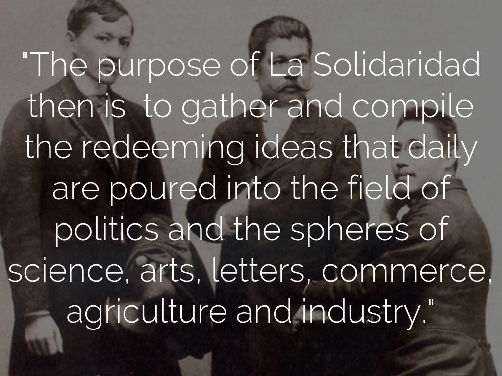 "The purpose of La Solidaridad then is to gather and compile the redeeming ideas that daily are poured into the field of politics and the spheres of science, arts, letters, commerce, agriculture and industry."