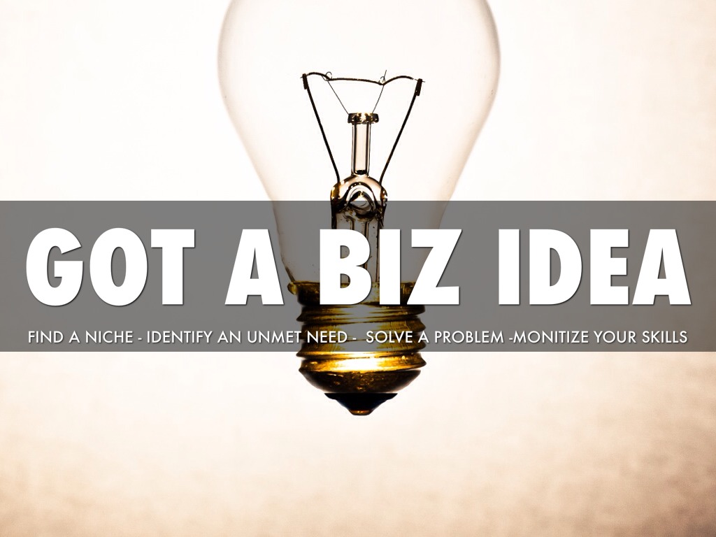 FIND A NICHE - IDENTIFY AN UNMET NEED - SOLVE A PROBLEM -MONITIZE YOUR SKILLS