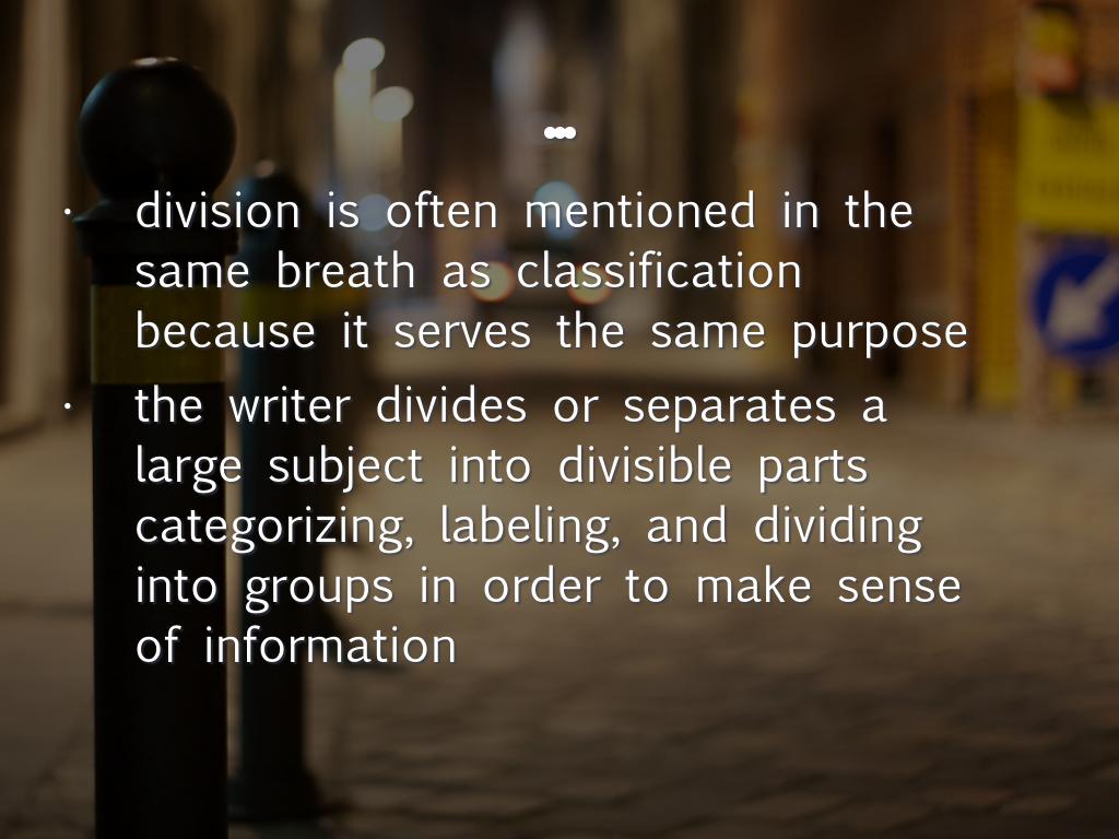 division is often mentioned in the same breath as classification because it serves the same purpose