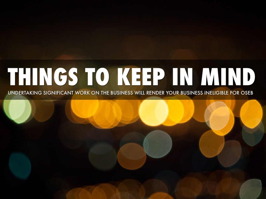 UNDERTAKING SIGNIFICANT WORK ON THE BUSINESS WILL RENDER YOUR BUSINESS INELIGIBLE FOR OSEB
