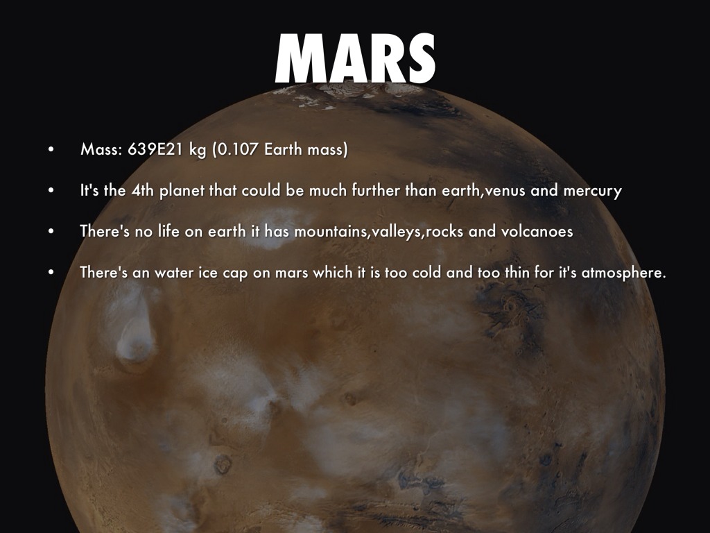 There's an water ice cap on mars which it is too cold and too thin for it's atmosphere.
