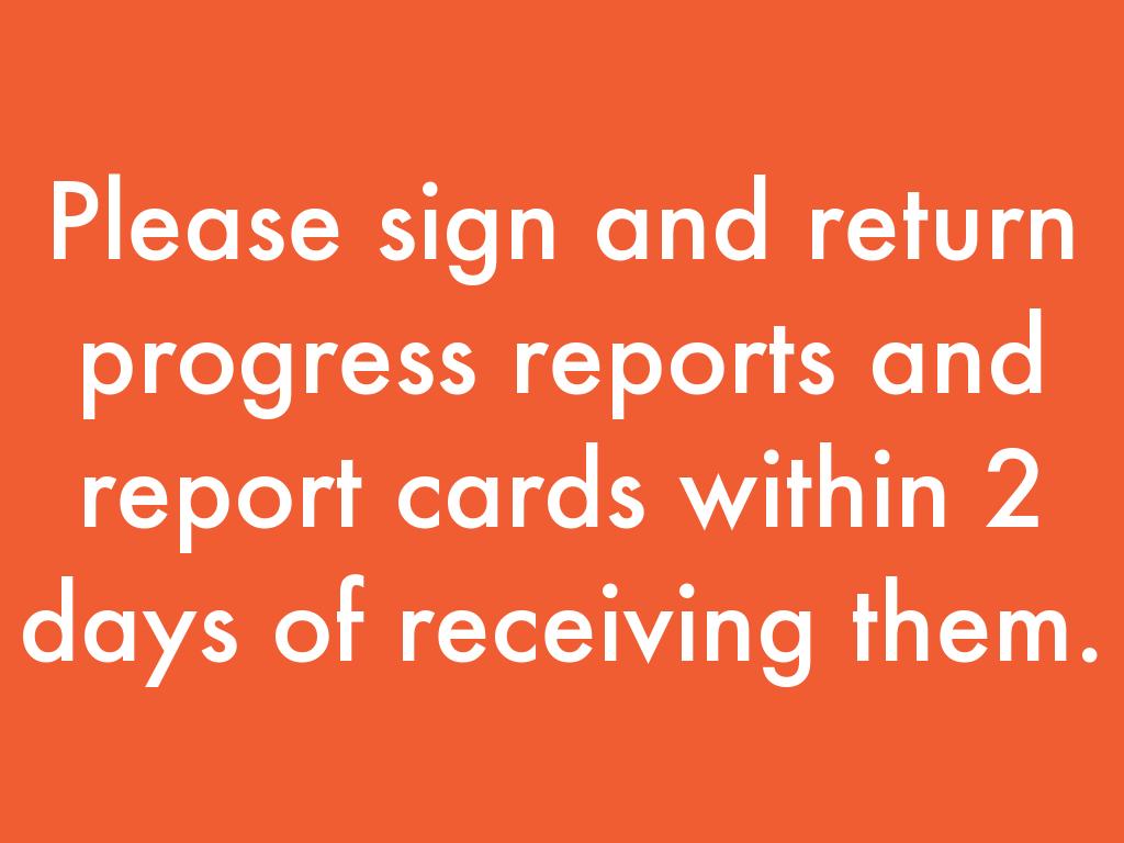 Please sign and return progress reports and report cards within 2 days of receiving them.