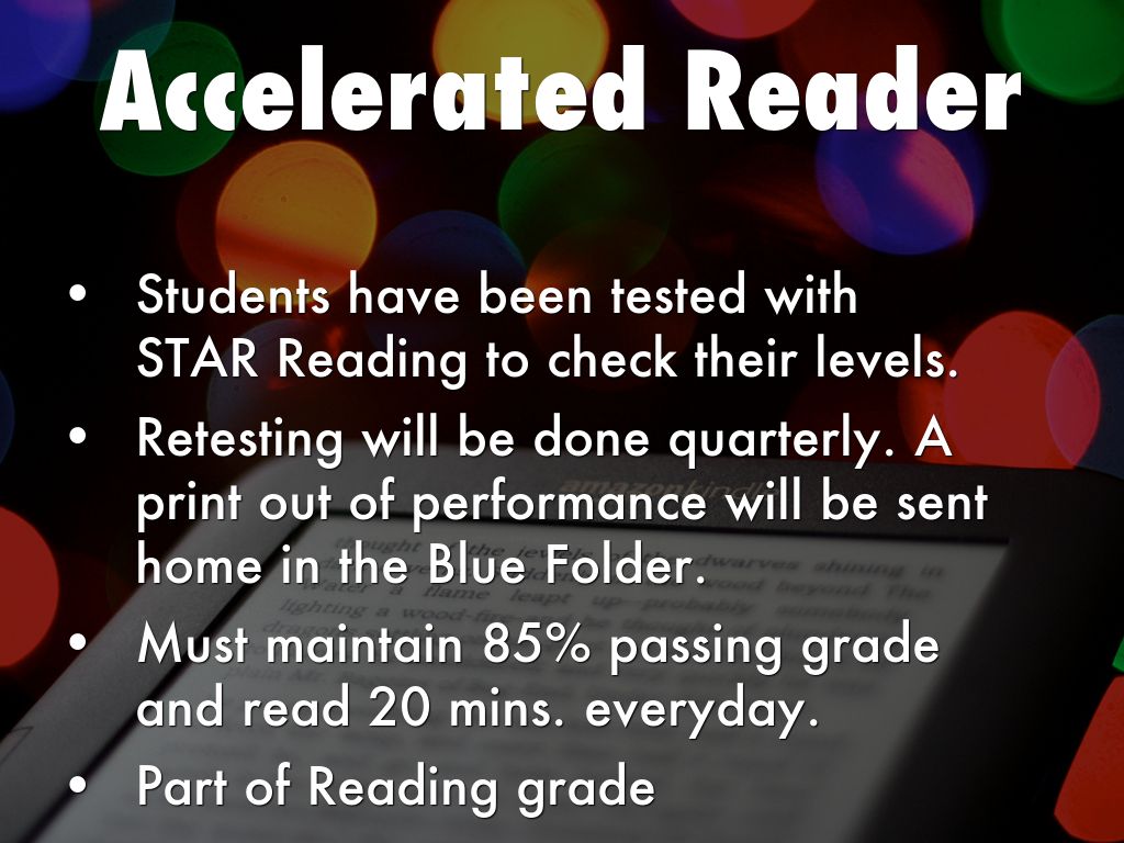Must maintain 85% passing grade and read 20 mins. everyday.