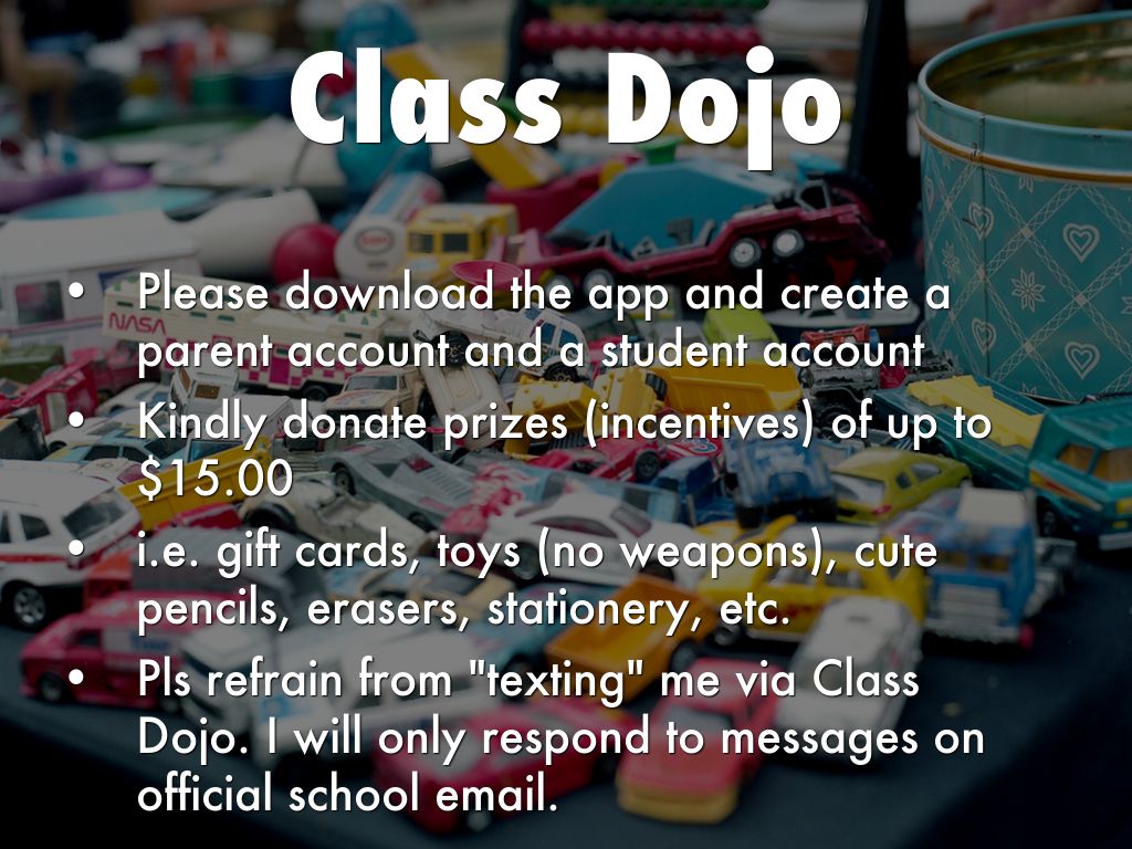 Pls refrain from "texting" me via Class Dojo. I will only respond to messages on official school email.
