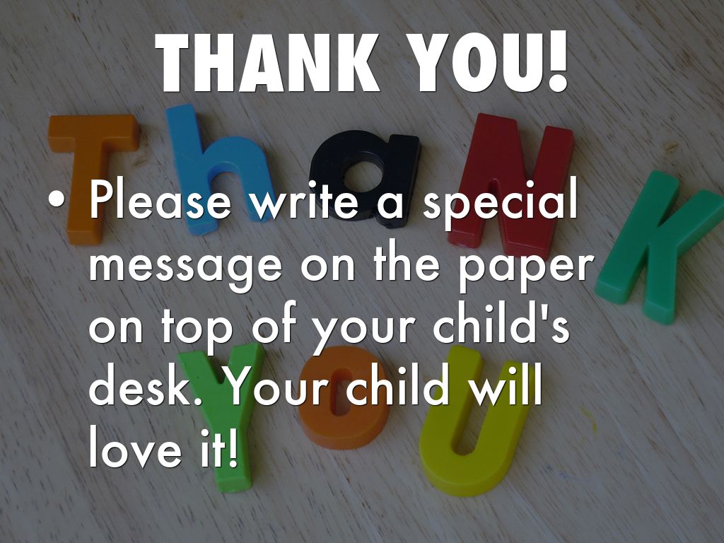 Please write a special message on the paper on top of your child's desk. Your child will love it!