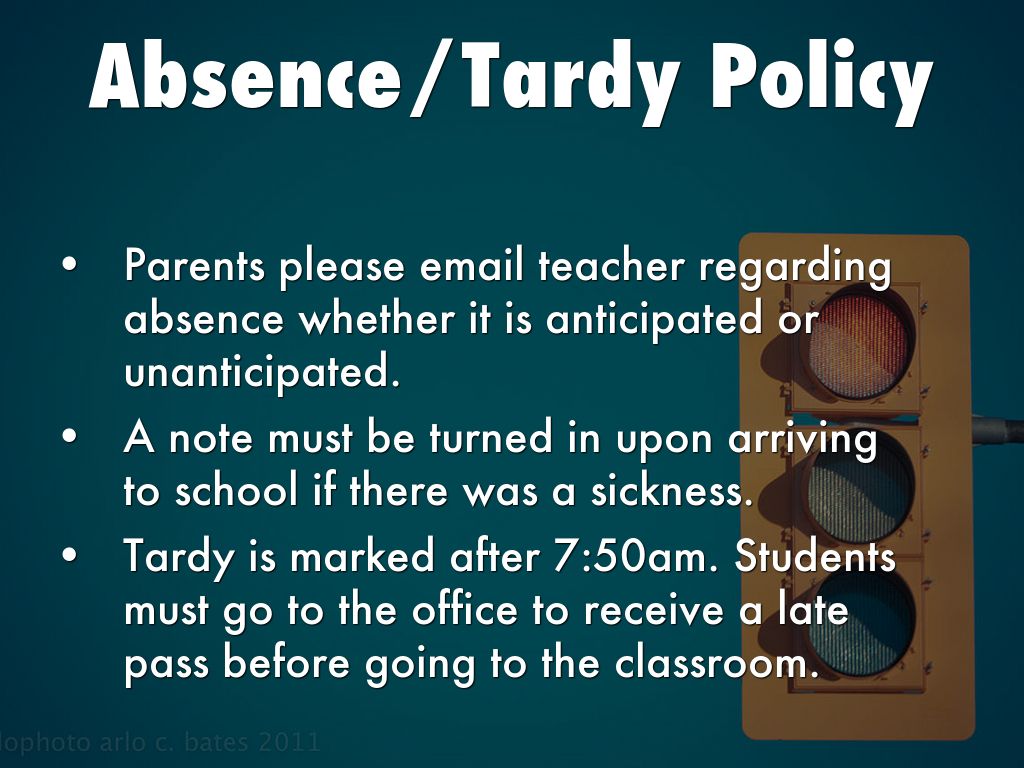 Parents please email teacher regarding absence whether it is anticipated or unanticipated.