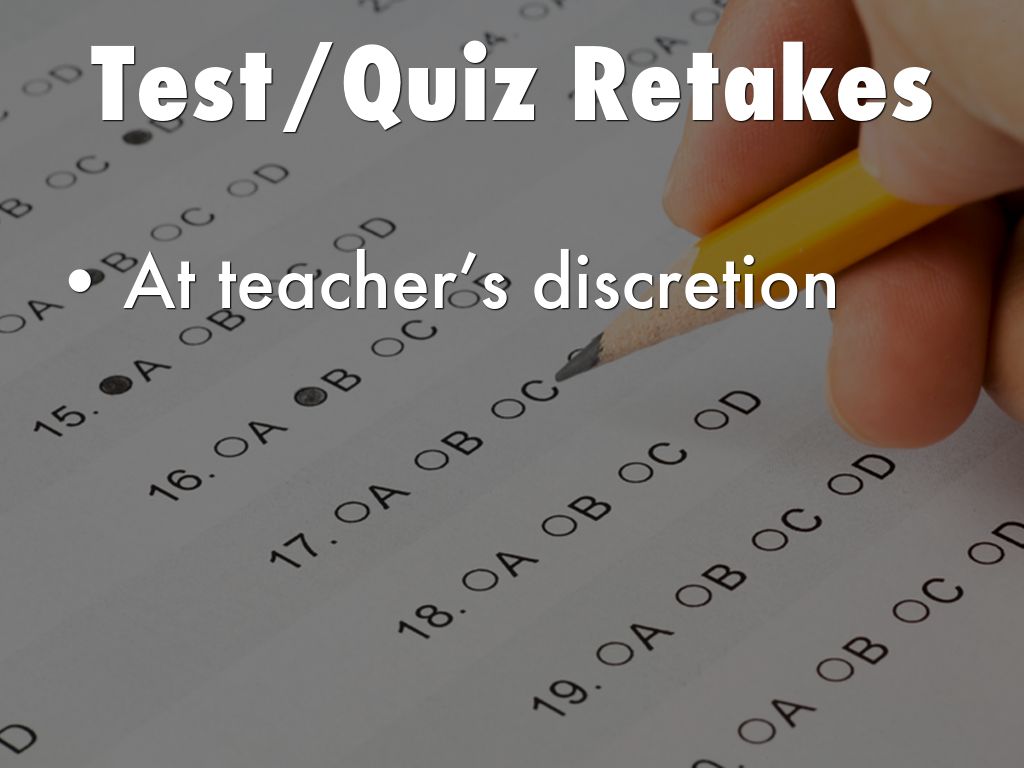 Absolutely NO retakes will be given two weeks before the end date of a given quarter/grading period.