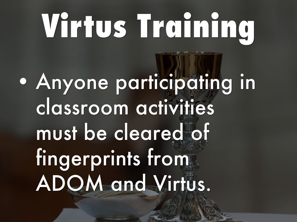 Anyone participating in classroom activities must be cleared of fingerprints from ADOM and Virtus.