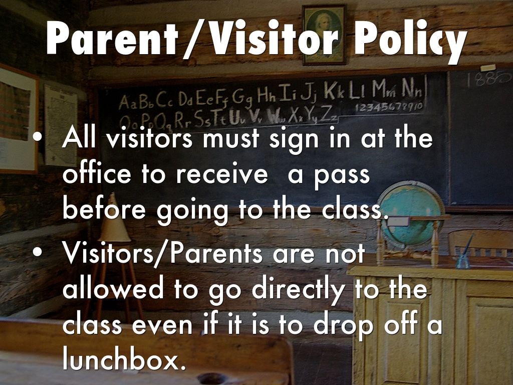Visitors/Parents are not allowed to go directly to the class even if it is to drop off a lunchbox.