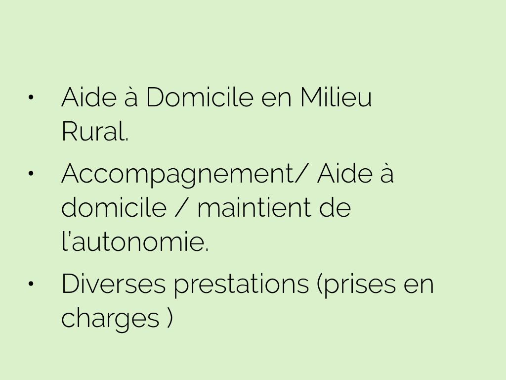 - Accompagnement/ Aide à domicile / maintient de l’autonomie.