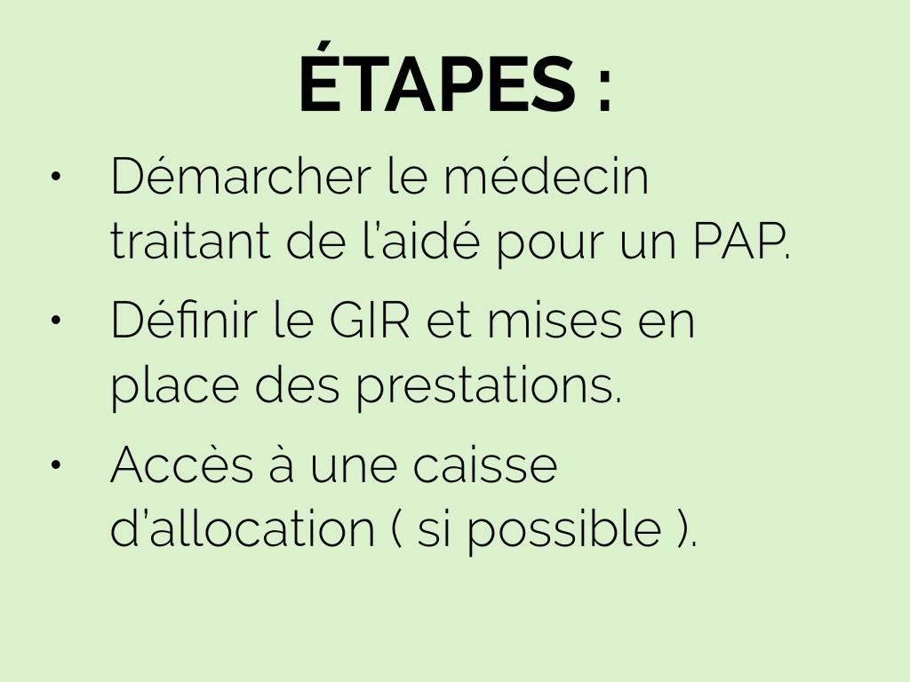 - Démarcher le médecin traitant de l’aidé pour un PAP.