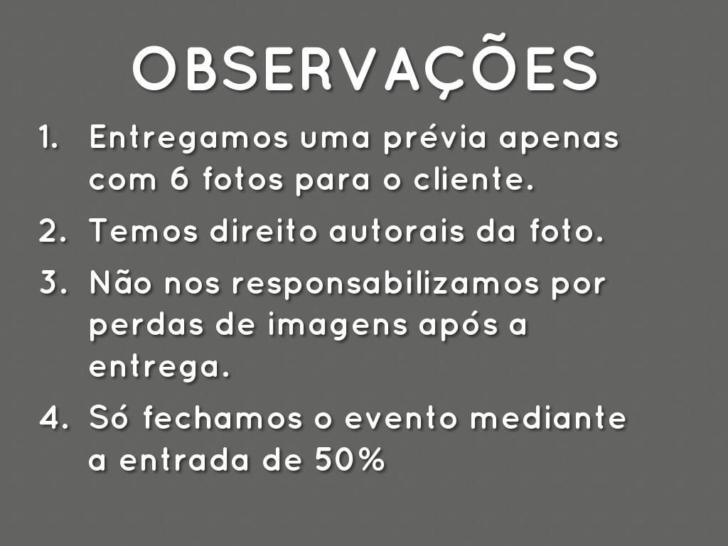 • Não nos responsabilizamos por perdas de imagens após a entrega.