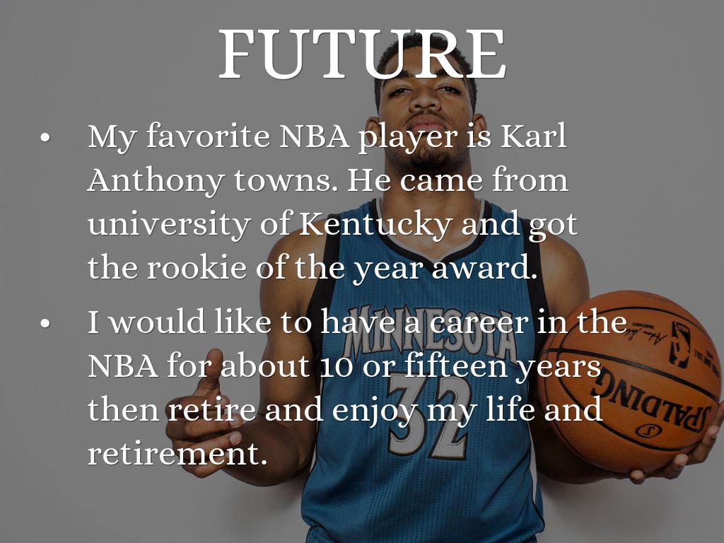 My favorite NBA player is Karl Anthony towns. He came from university of Kentucky and got the rookie of the year award.