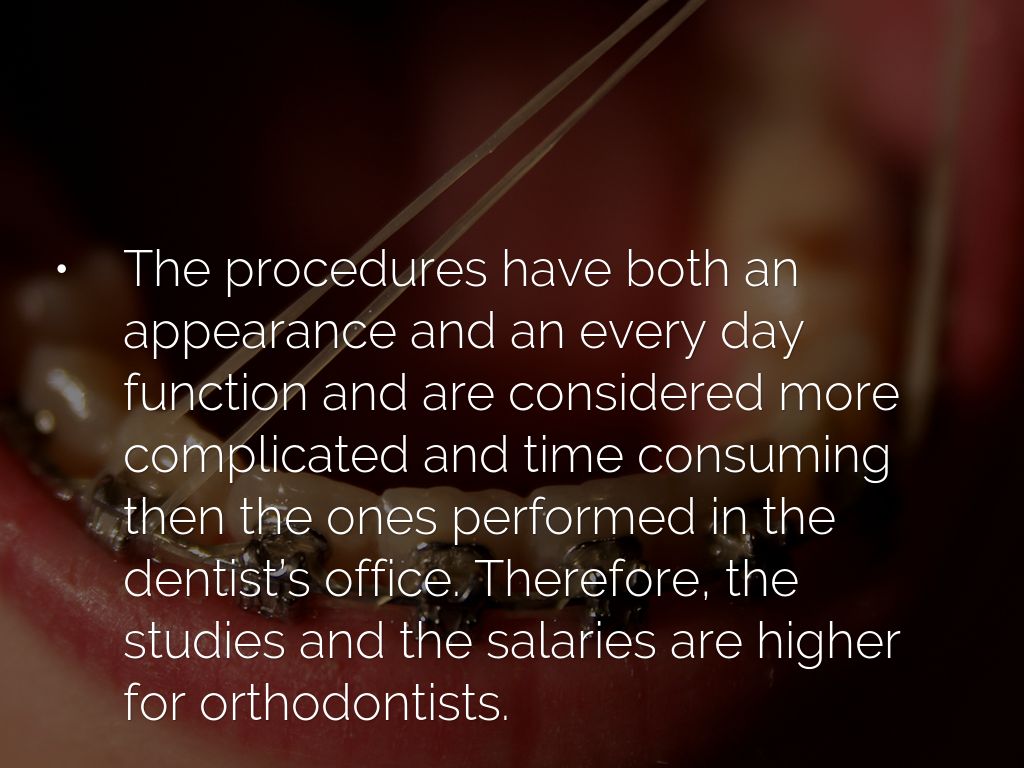 The procedures have both an appearance and an every day function and are considered more complicated and time consuming then the ones performed in the dentist’s office. Therefore, the studies and the salaries are higher for orthodontists.