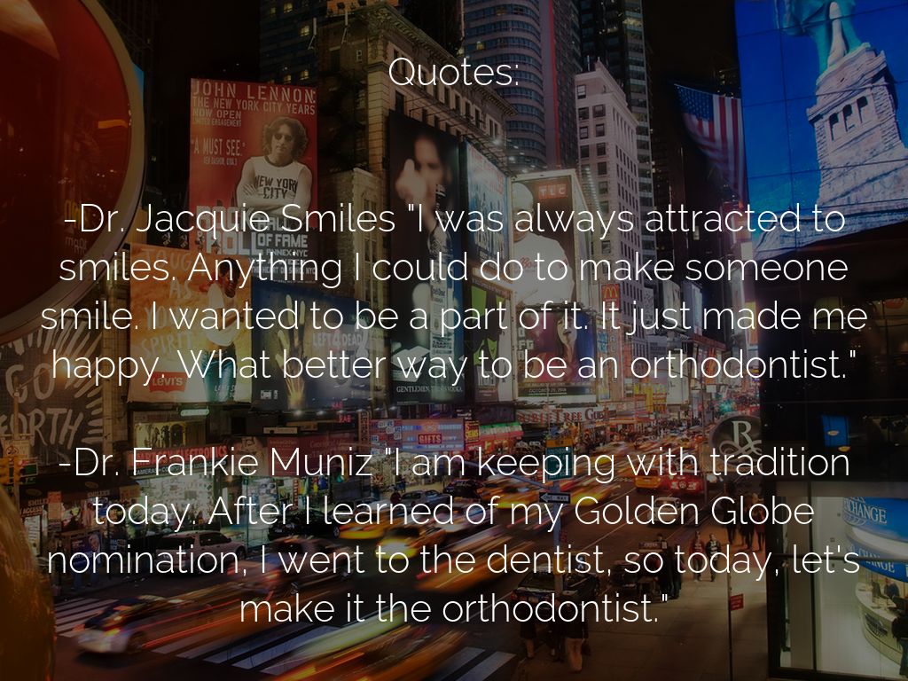 -Dr. Frankie Muniz "I am keeping with tradition today. After I learned of my Golden Globe nomination, I went to the dentist, so today, let's make it the orthodontist."