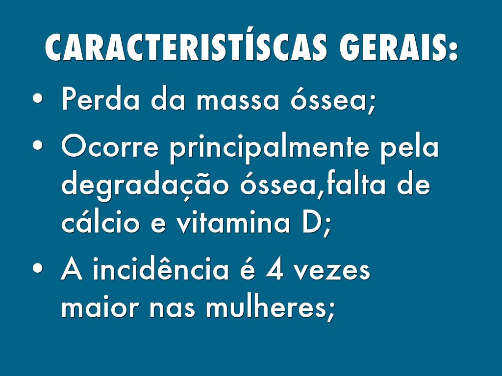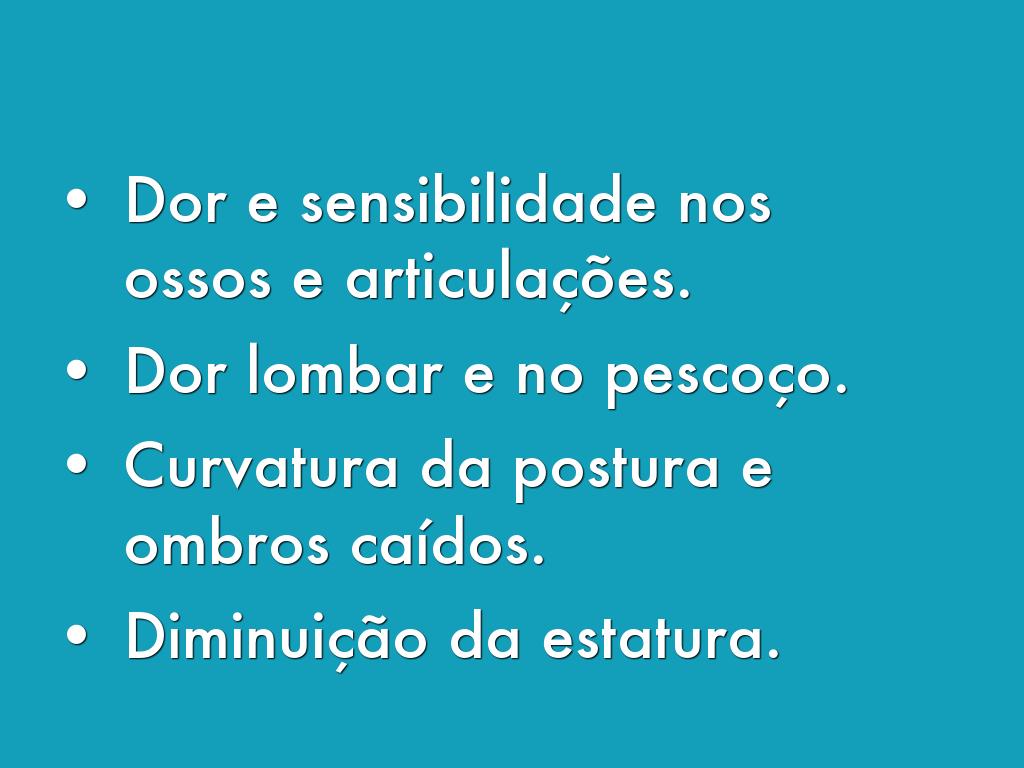 - Ocorre principalmente pela degradação óssea,falta de cálcio e vitamina D;