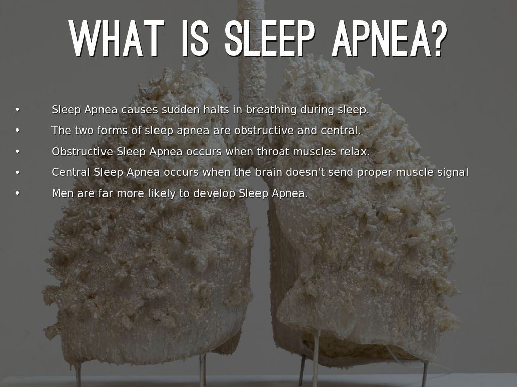 • Sleep Apnea causes sudden halts in breathing during sleep.