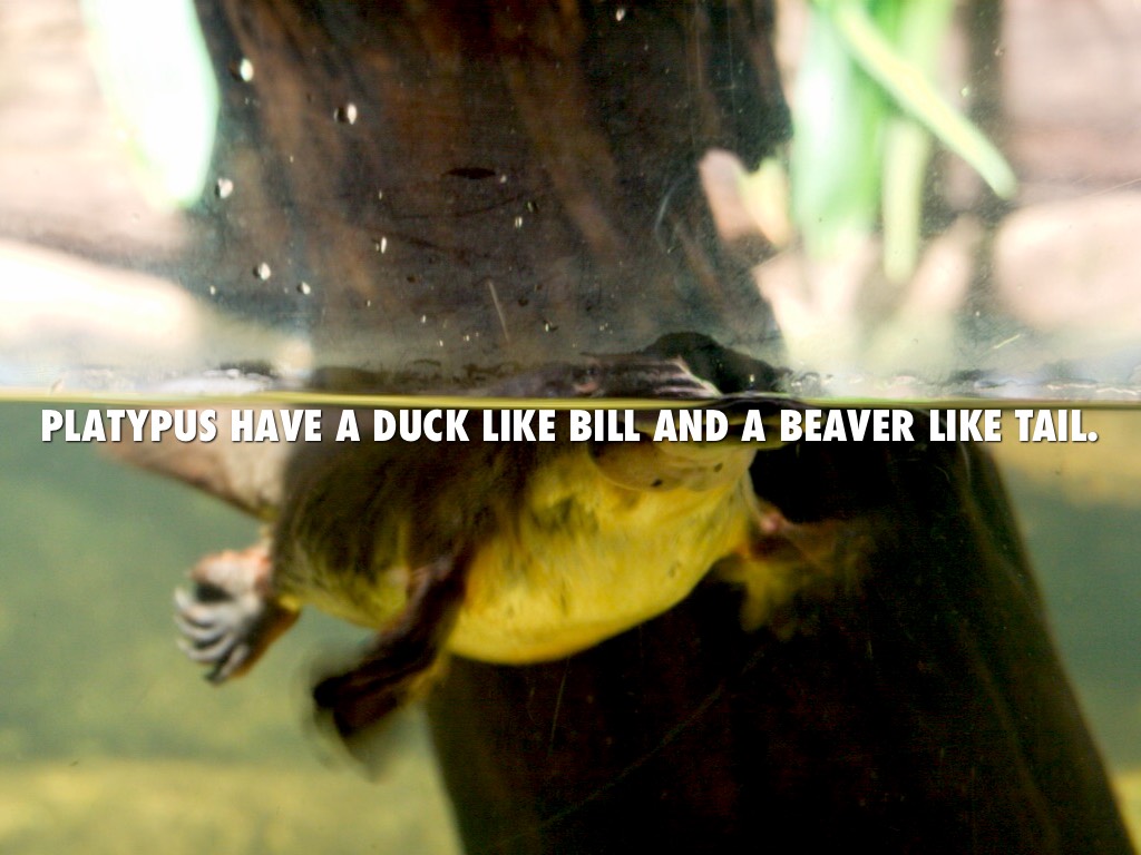PLATYPUS HAVE A DUCK LIKE BILL AND A BEAVER LIKE TAIL.