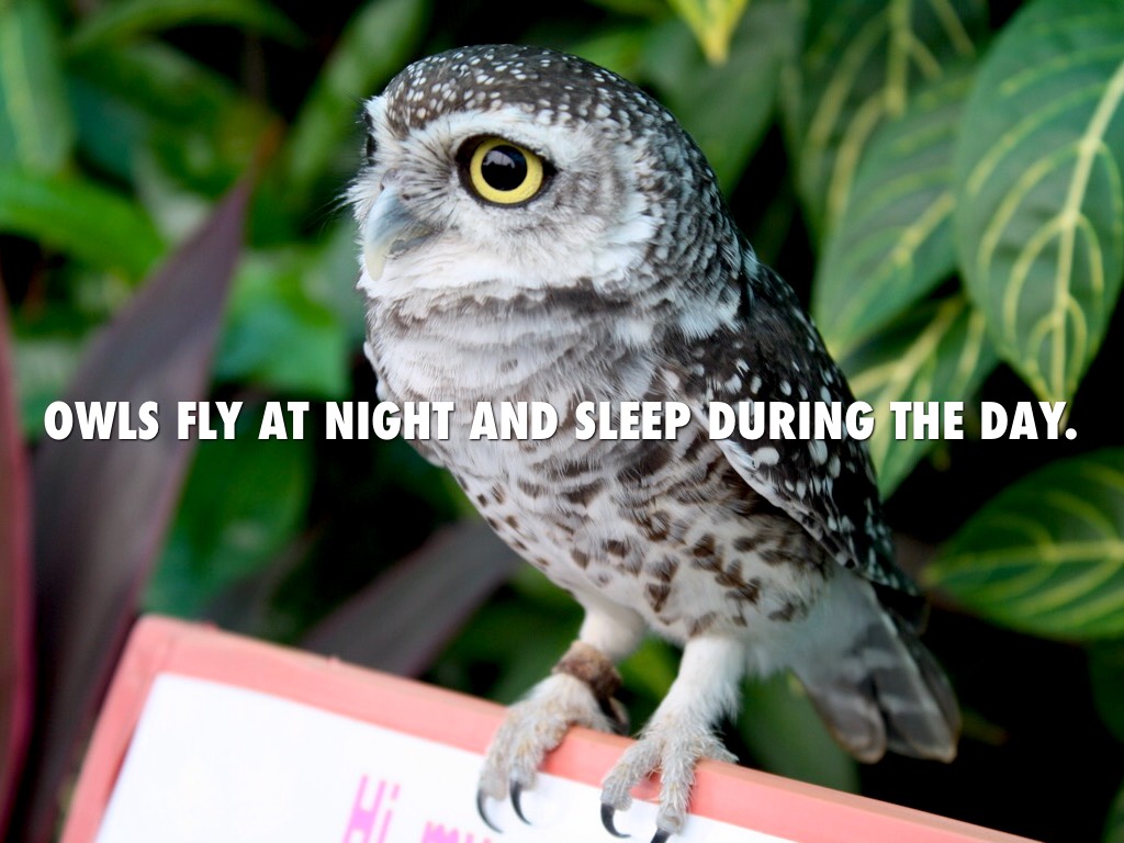OWLS FLY AT NIGHT AND SLEEP DURING THE DAY.