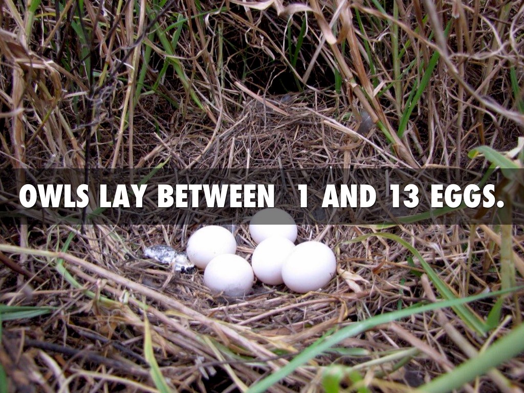 OWLS LAY BETWEEN 1 AND 13 EGGS.