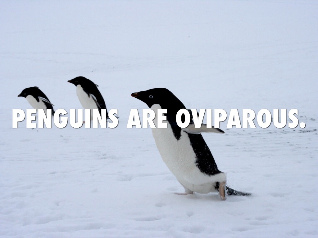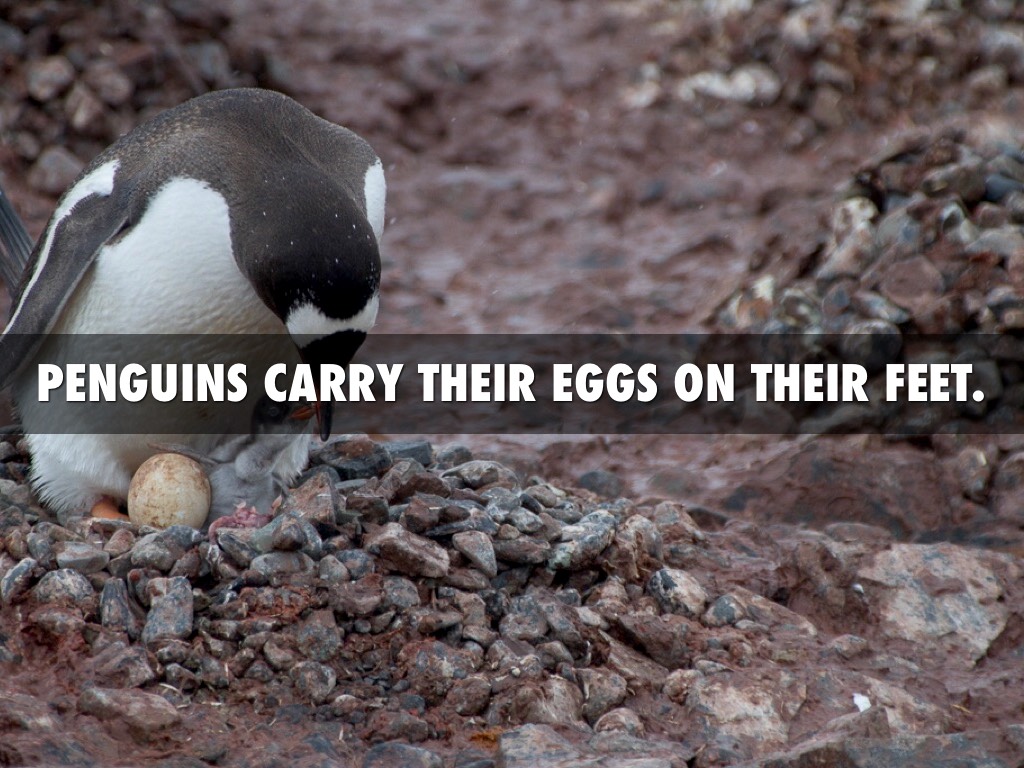 PENGUINS CARRY THEIR EGGS ON THEIR FEET.