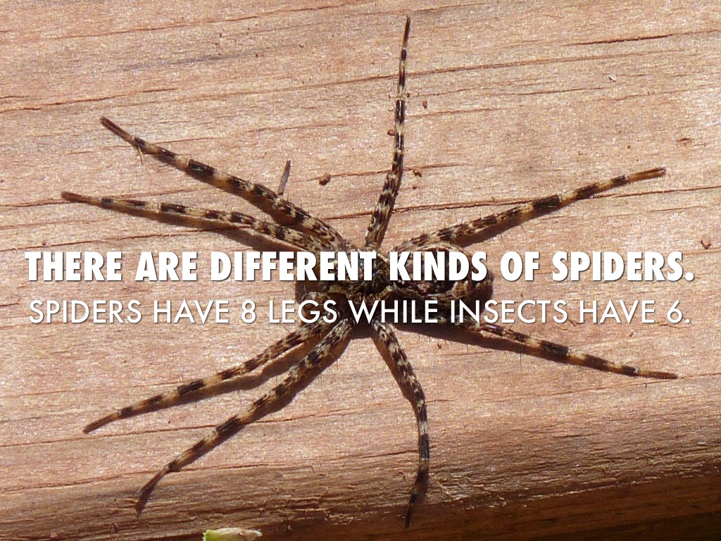 SPIDERS HAVE 8 LEGS WHILE INSECTS HAVE 6.
