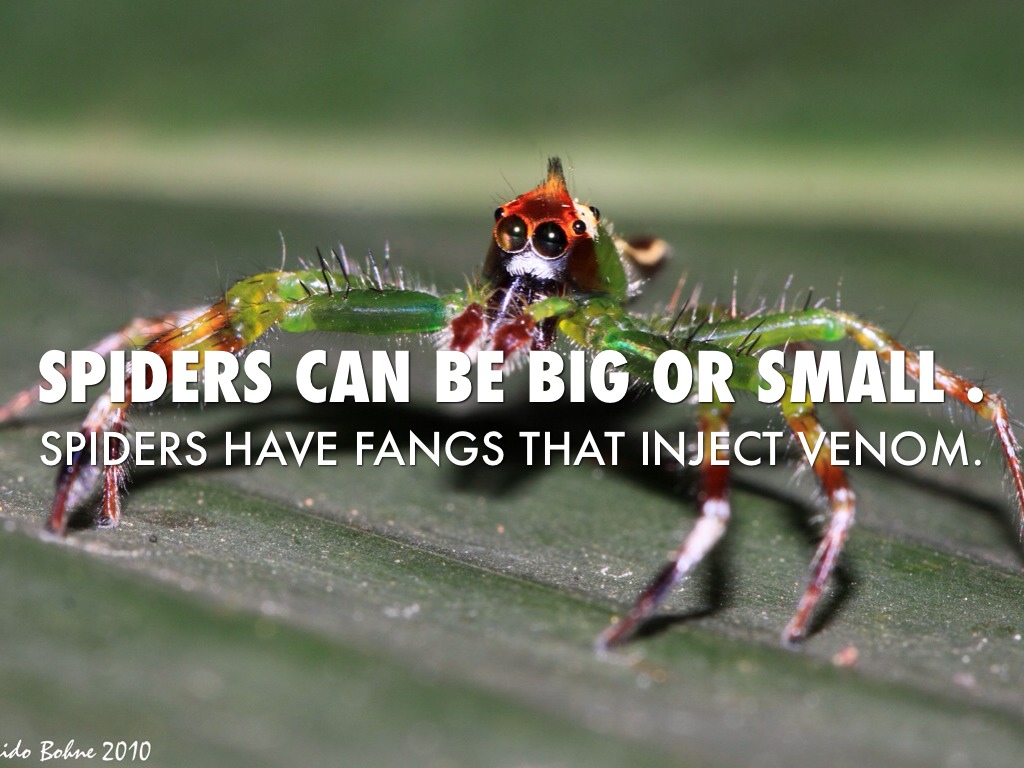 SPIDERS HAVE FANGS THAT INJECT VENOM.
