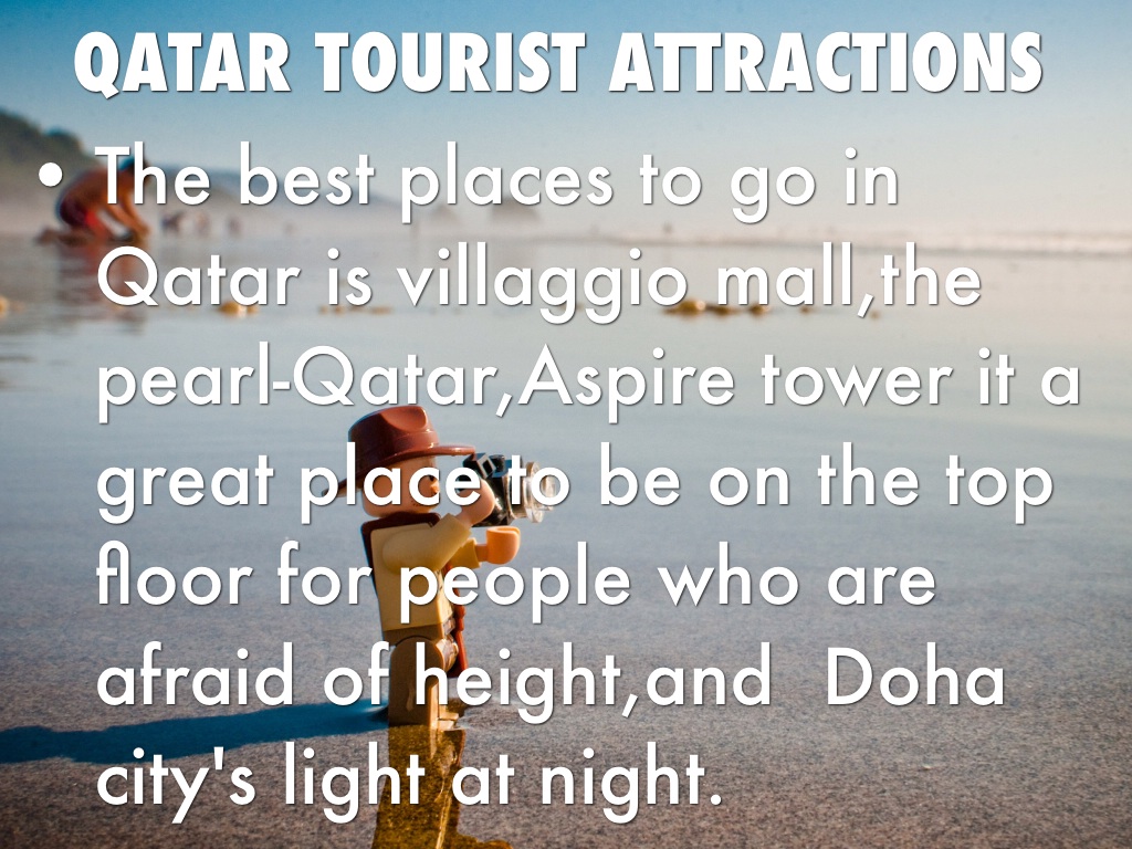 The best places to go in Qatar is villaggio mall,the pearl-Qatar,Aspire tower it a great place to be on the top floor for people who are afraid of height,and Doha city's light at night.